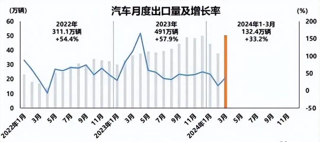 货物进出口总额同比增长5.0%。其中,出口增长4.9%;进口增长5.0%。进出口相抵,贸易顺差13063亿元。新三样,新能源汽车、锂电池、光伏非常火爆,尤其是电动车,除了禁止中国汽车进入的市场,基本上都是乱杀的水平。第一季度,汽车出口132.4万辆,增长33.2%。