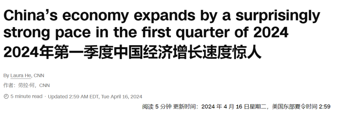 根据IMF之前对于中国GDP的增长预测仅为4.6%,轻轻松松超预期。这下子欧美媒体几十年如一日的“中国崩溃论”有点编不下去了,只能承认中国经济确实很坚韧,比如:CNN就罕见说中国经济增速惊人。