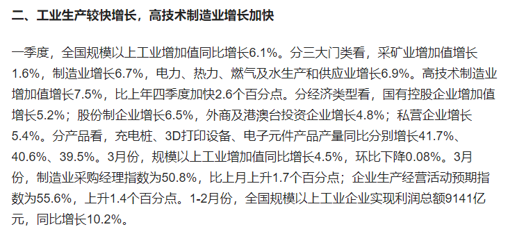 其实不只是GDP涨得多,衡量工业发展的各项指标,都是相当乐观。其中,3月份,制造业采购经理指数为50.8%,比上月上升1.7个百分点,这个指数高于50%,表示制造业处于扩张状态;而低于50%,表示制造业经济活动处于收缩状态,也就是说,我国的制造业处于扩张状态。