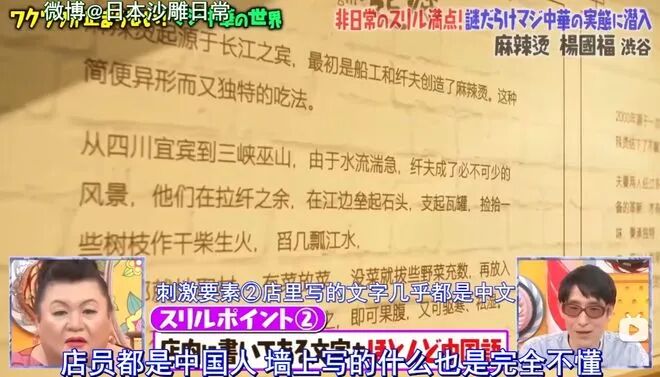 不止是石黑英雄开始尝试中国菜,日本电视台也经常播放尝试中国菜的画面,记者试吃:钵钵鸡,铁锅炖鲤鱼,烧烤,火锅等。