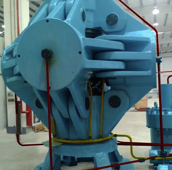 当时咱们的第一颗人造金刚石使用的是两面顶,而在研发设备时,咱们选择的是六面加压用液压机,当时的考虑是多面加压,更有利于晶体成长,后来的发展也证明了这一点。