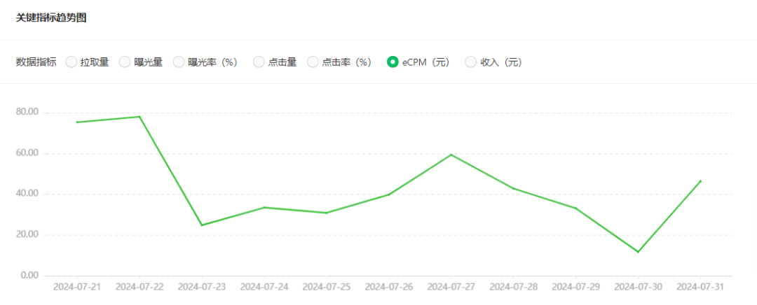 我发现eCPM的价格高低不定,一般都是几块到几十不等,最高的时候竟有4000多。