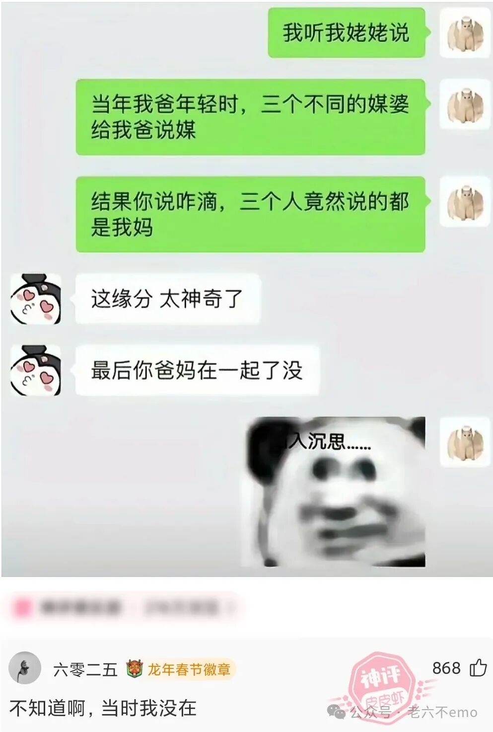 某女同学生日搞聚会,因为她人缘不错,很多人参加。到场时发现除了一堆年轻人,还有我们数学老师。大家都愣了,因为大家都很讨厌这老师,经常扎堆说他坏话。然后我往那同学旁边一坐,悄悄地问了句:“你怎么把那SB也给请来了?”她淡定地说:“这SB是我爸,他非要跟来的。”