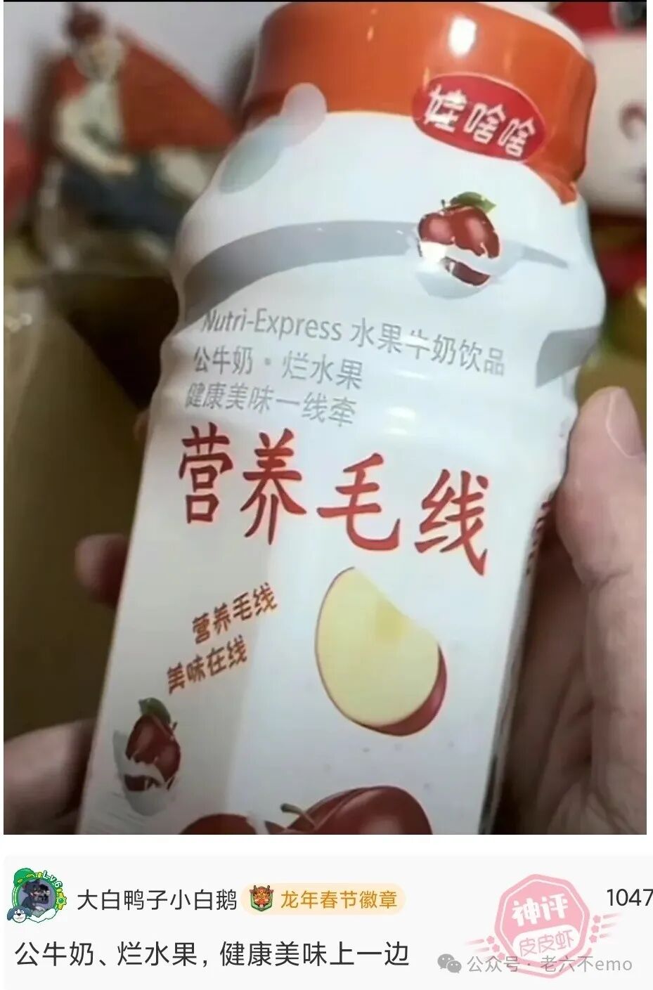 大家买饮料一定要认准,是娃哈哈不是娃啥啥,是营养快线,不是营养毛线,别像我一样