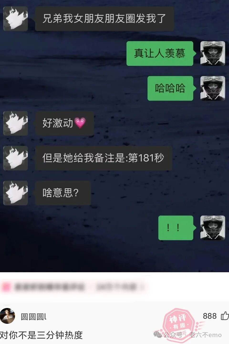 老婆:“他回来了,你快躲起来。”男人在门外听到老婆的话他知道发生了什么,一进屋发现衣柜动了一下。他抬起衣柜就准备从八楼扔下去,老婆:“等一下,你听我说完!”老公:“你不用解释了!”说完就把衣柜推了下去。老婆:“儿子在和你玩捉迷藏呢!”