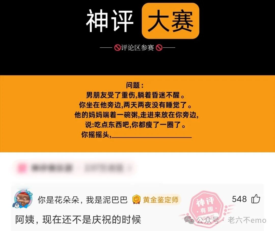 离婚案。两夫妻在庭上吵,指责对方撒谎。法官和律师都很无聊在听。突然间女的刷的一声从包里拿出一个大相框,指着相框里女人的相片说:“你够胆当着你妈的面再说一次!”在场的人都惊呆了,说时迟那时快,男的刷的从包里拿出三根香,冲着相片就摆上了……还转头对律师一笑:“我就知道她会来这招!”