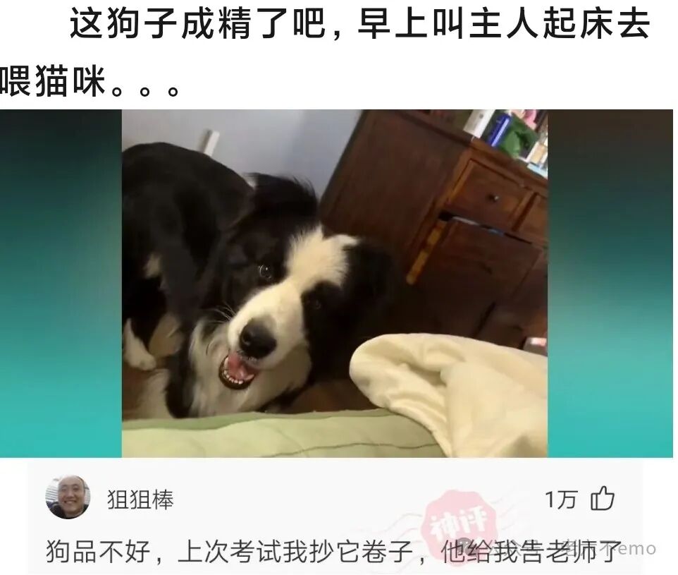 “喂,怎么样,弗瑞德里克,”父亲问,“你的女老师满意你么?”“啊,是的爸爸,十分满意。”“你怎么知道,是她亲口对你说的?”“当然爸爸,她对我说‘如果所有的学生都像你这样,我就马上离开学校’,这说明我已经全学会了。”