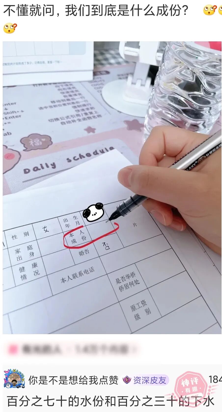 妹妹在学校只吃素,回家就不忌口了。过年期间,体重涨势可观。老妈见了想要指出,又怕伤害花季少女的自尊,就委婉地说:“你有没有听过一句话叫女儿是妈贴心的…”妹妹立刻接上:“贴心的小棉袄!”妈妈:“可你再这样下去,很快要变成军大衣了。”