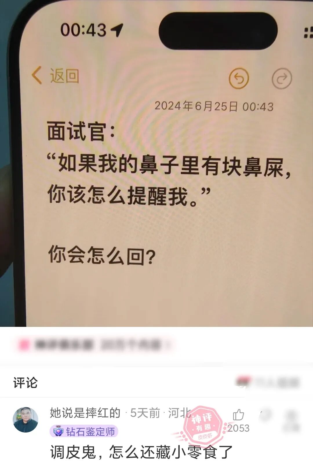 去某公司应聘销售员,面试官拿出他的手机递给我说:“现在,你要想办法把这部手机卖给我。”我说:“这部手机是目前最流行的iPhone6,现在8888元卖给你。”面试官摇了摇头。我说:“不买就算。”然后拿着手机回家了。