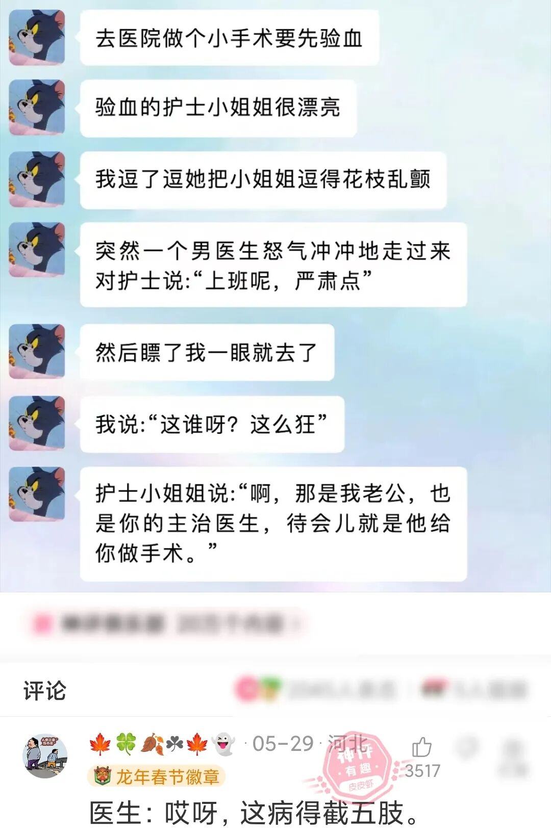 最近老婆得了一种怪病:一上班就想睡觉,一扫地就觉得手疼,一洗衣服就浑身发冷,一做饭就喘不上气,总之一干活就不舒服。所以家庭的重担就落在了我的身上,但没办法,家里的经济条件实在是有限,没有条件带老婆上医院检查治病,只能凑合着过吧!