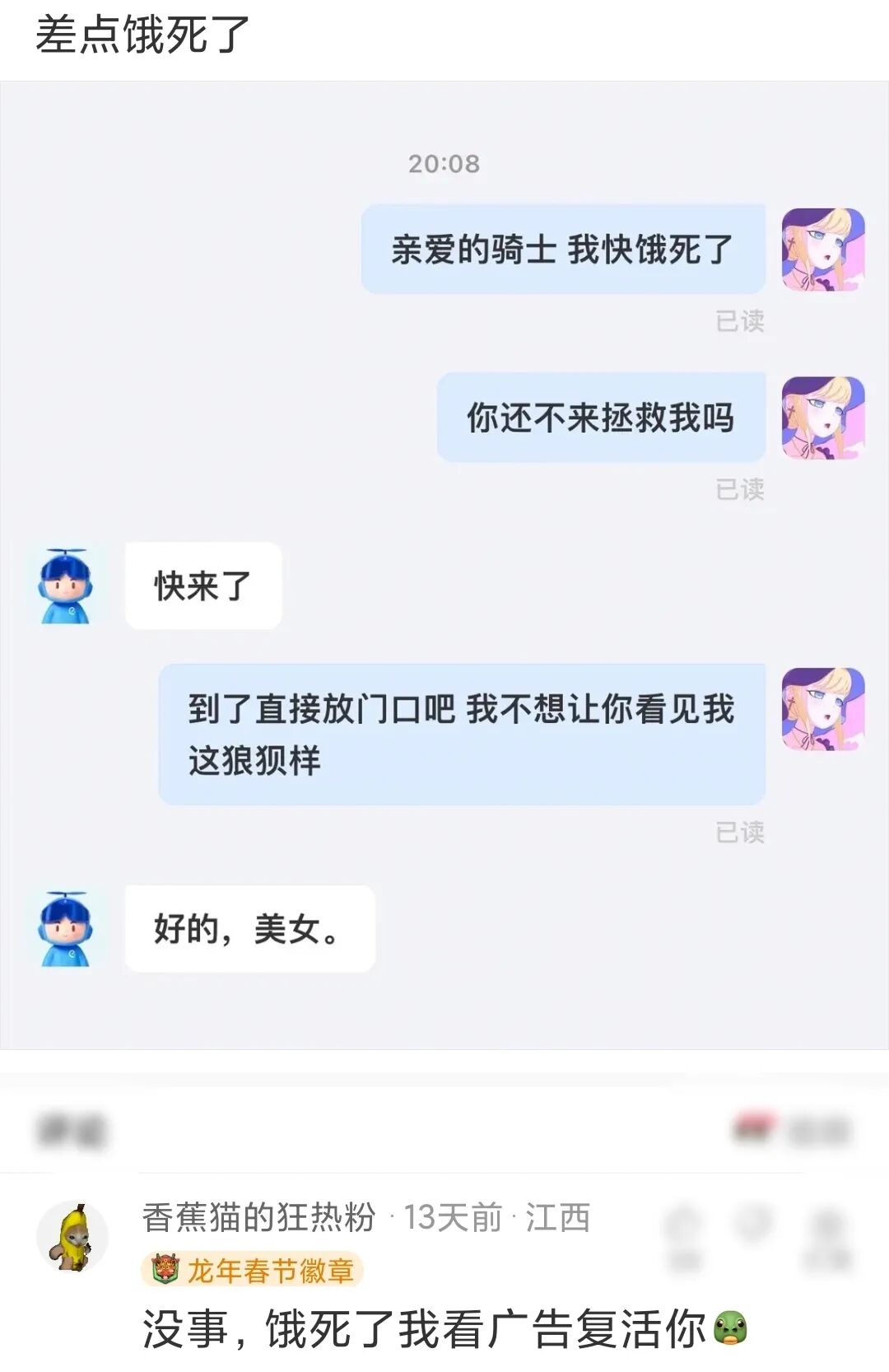 “先生,你不能进去!”一个消防员拦住我。“别拦我,快让我进去。”“里面火势很猛,我是为你的安全着想。请退后。”“那我更应该进去,我不能眼睁睁的看着火势蔓延而无动于衷。”“那你TM拿着一把生羊肉串是什么意思……”