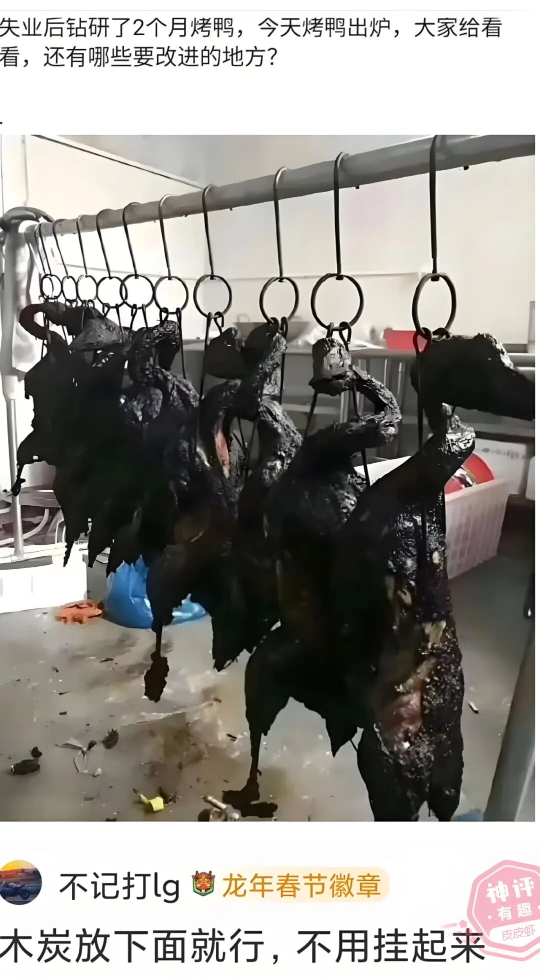 神回复:钻研2个月的烤鸭出炉了,大家看看还有哪些需要改进的地方?