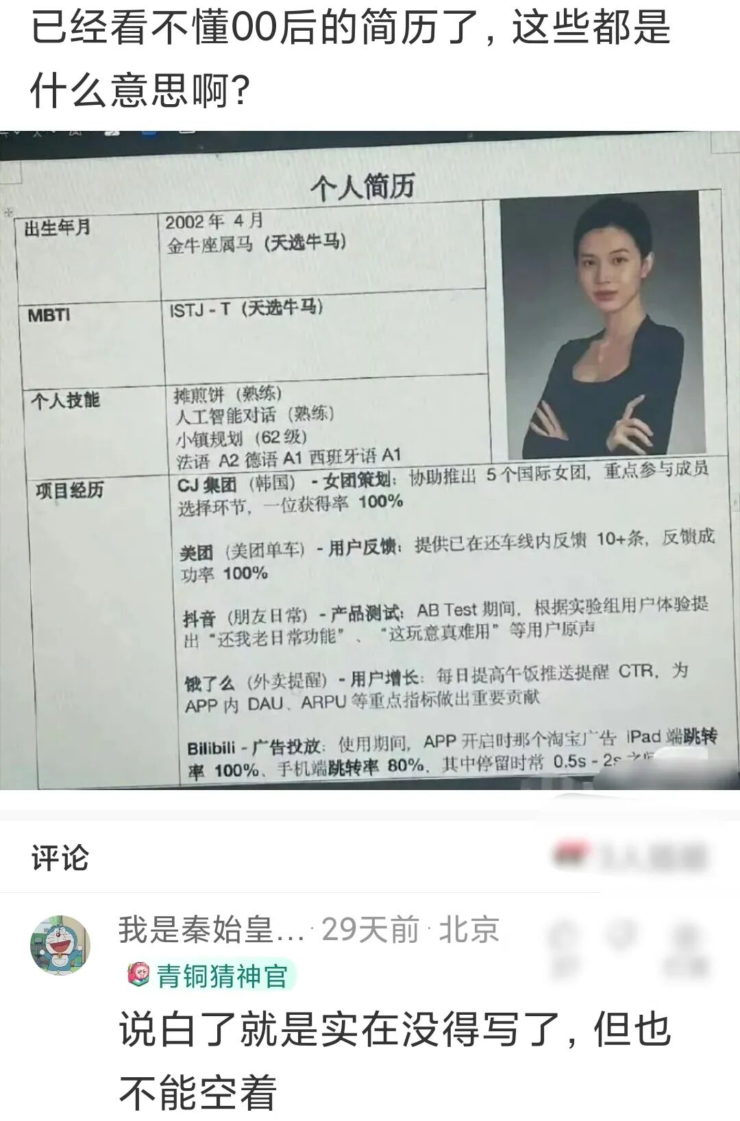神回复:已经看不懂00后的简历了,这些都是什么意思啊?