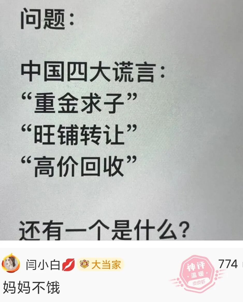 失恋的侄女以泪洗面,我安慰她:“叔是过来人,你要相信一次失恋没什么,以后还会遇到更好的对象。”她抽泣着回答:“你骗人!”我说:“我可是你叔,骗你干啥。”她吸了吸鼻子:“我是说你都没谈过恋爱,根本不算过来人!”