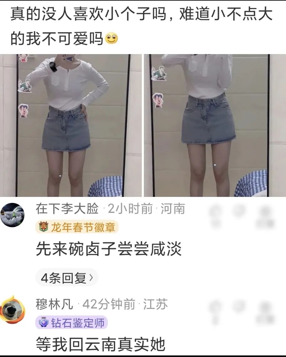 神回复:真的没人喜欢小个子的吗,难道小不点大的我不可爱吗?