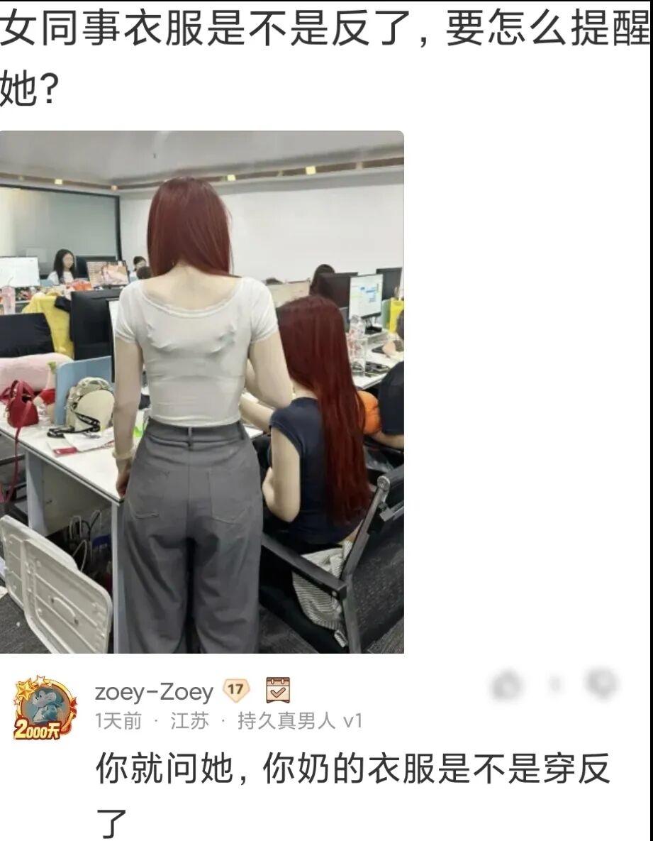 神回复:女同事衣服是不是穿反了,该怎么提醒她?