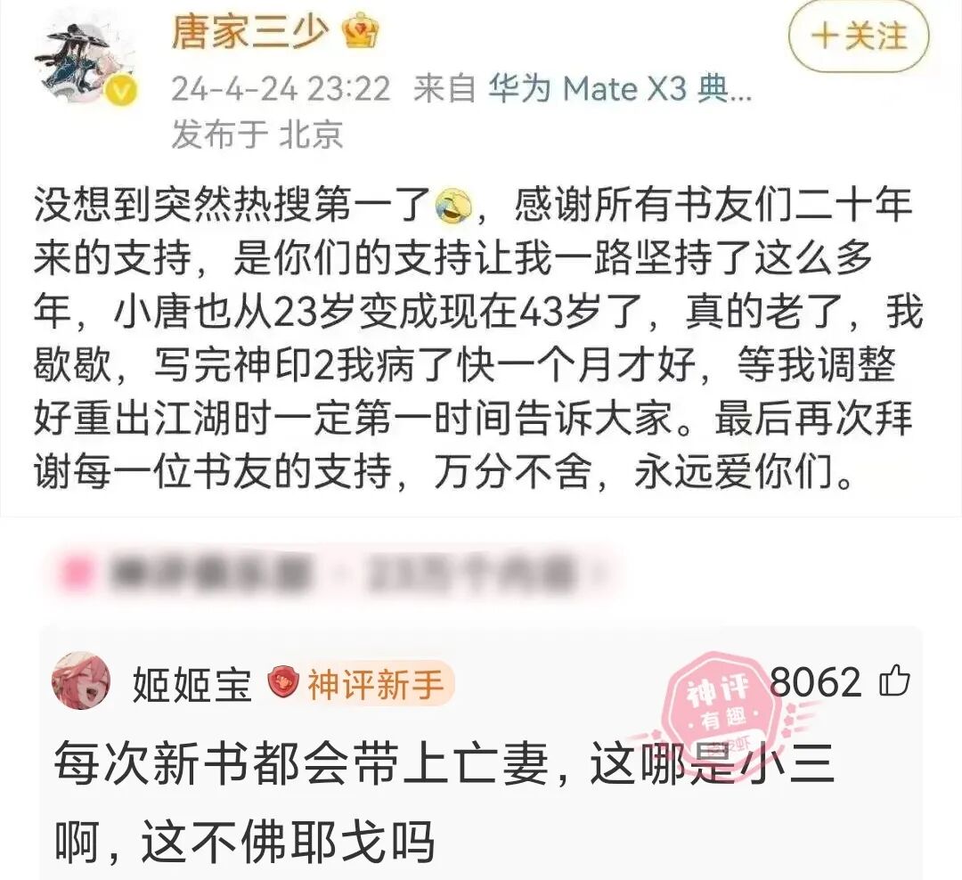 神回复:每次新书都有会带上亡妻,这哪是小三,这不佛耶戈吗?