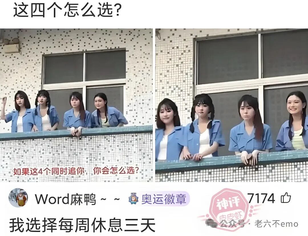 神回复:如果这4个妹子同时追你,你会怎么选?