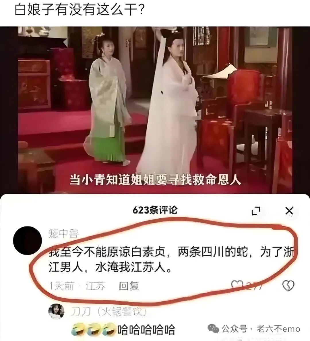 神回复:我至今不能原谅白素贞,两条四川的蛇,为了浙江的男人,水淹我江苏人~
