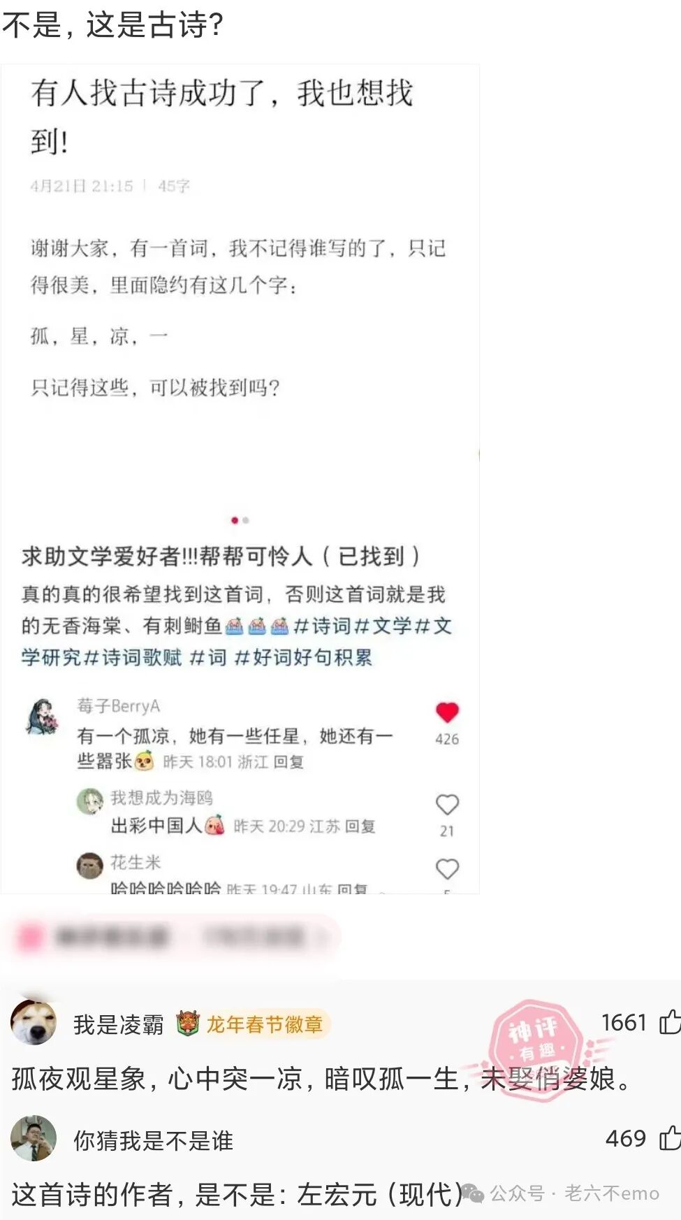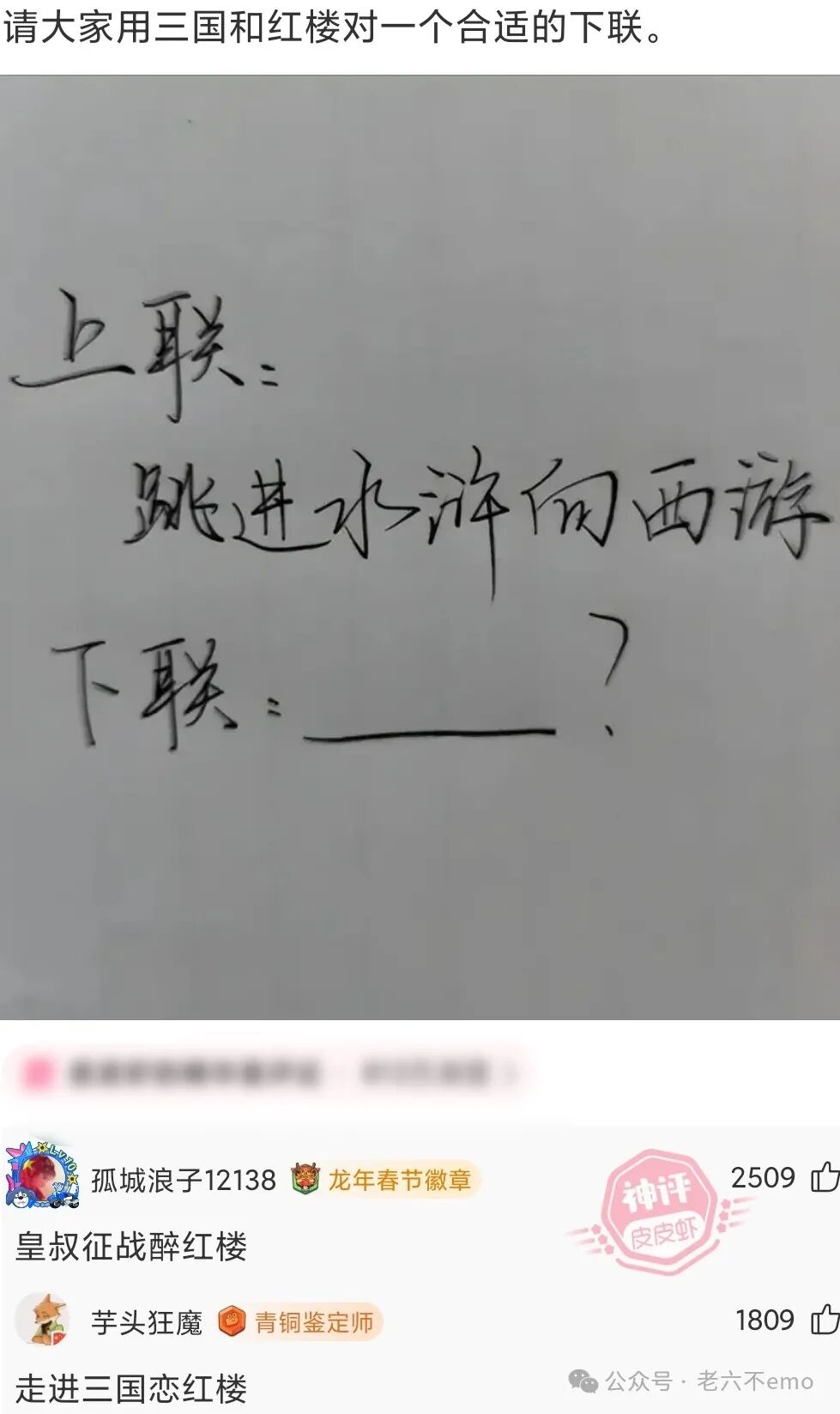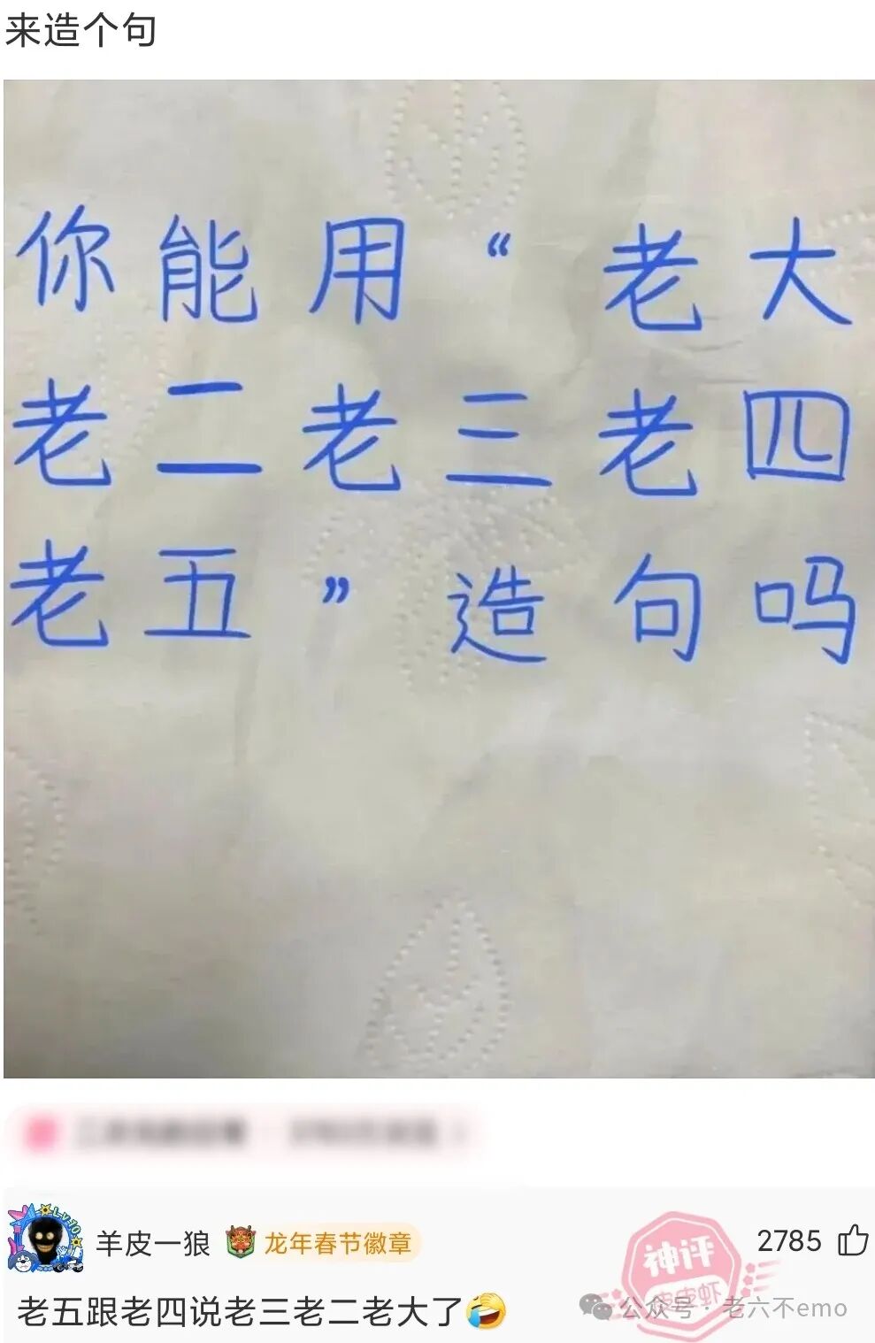 秦始皇:“我虽然贵为皇帝,三宫六院那么多老婆,其实都是选妃抢来的,她们心里根本就不是太愿意,唉!”唐太宗:“我的也是。”朱元璋:“我的也是。”乾隆:“我的也是。”王思聪:“呵呵!”