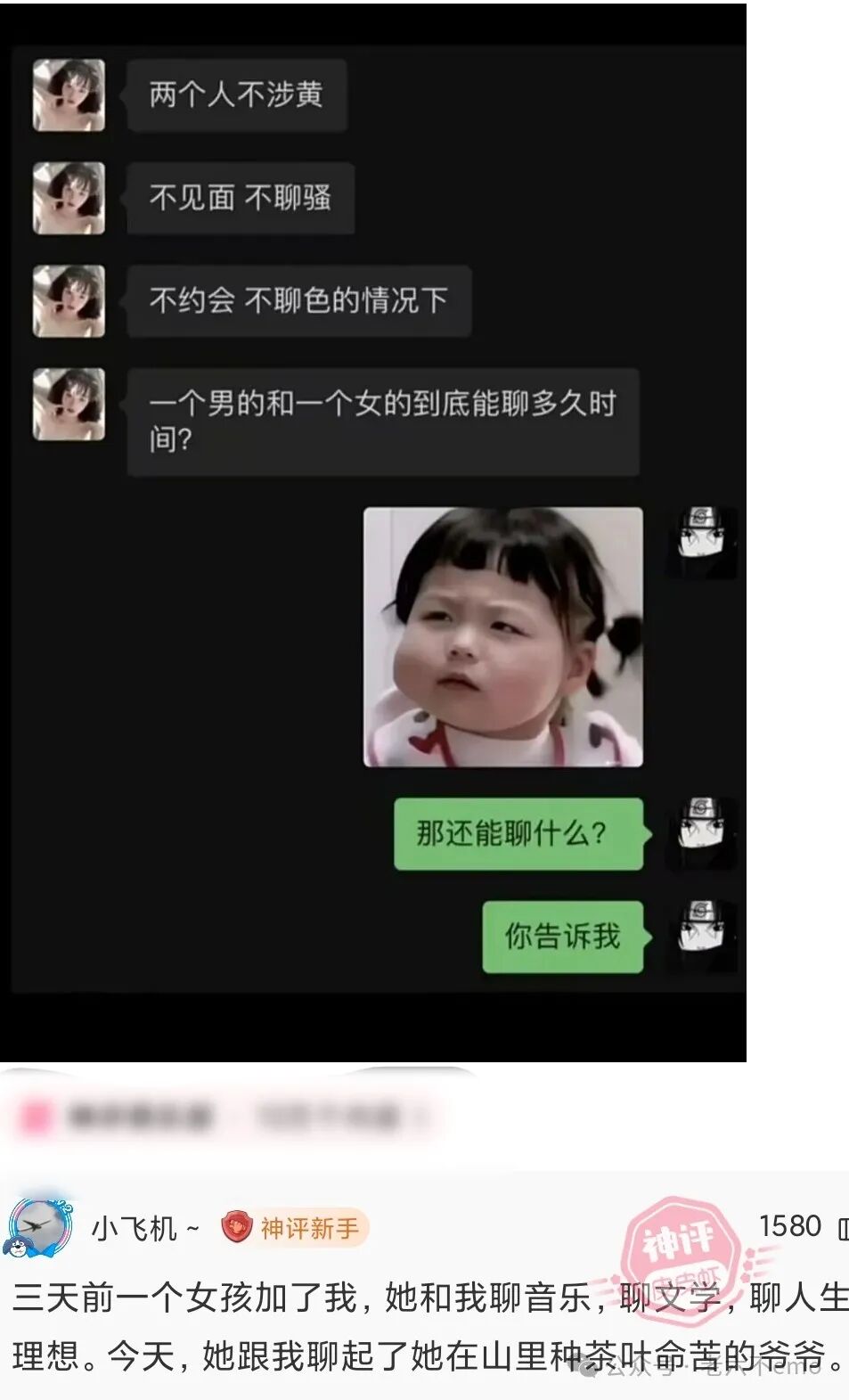 相亲刚开始,女孩就要求:“给我看下你的手机吧。”男孩纳闷,但还是把手机递了过去。女孩稍微看了下就把手机还了回去,然后很安静地说:“我觉得我们不合适。”男孩急了:“我们还没开始聊聊呢,你都不了解我啊!”女孩淡淡一笑:“我已了解了,连朋友圈都不给你推送广告,你说你是不是个穷逼?”