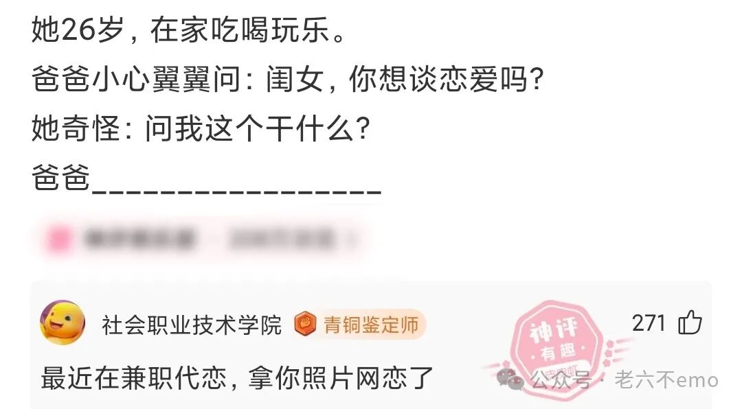 晚上喝酒跟别人打架,白色的T恤被染成了红色。回到家女朋友打量着我说:“早上出门你穿的是白T呀,咋了,又买新衣服了?”我非常生气,“来来来,你看看这TM是新衣服吗?这是血,我被人揍了。”“哦,那就好,我还以为你又乱花钱了呢。”