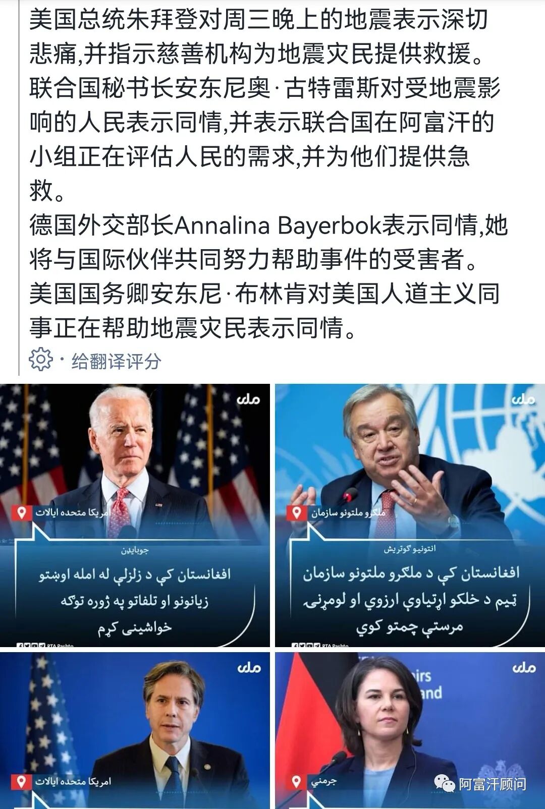 国际社会关注阿富汗地震