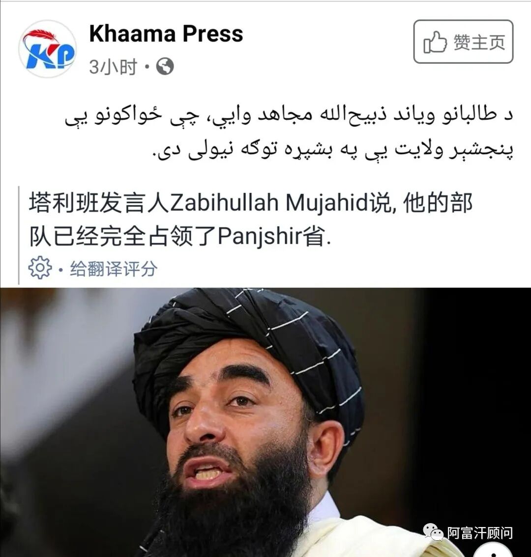 不过,亦有报道称潘杰希尔的国家抵抗阵线仍在与塔利班对抗。此前双方试图谈判,但至今尚未取得任何进展,战场上激烈对抗互有损伤。