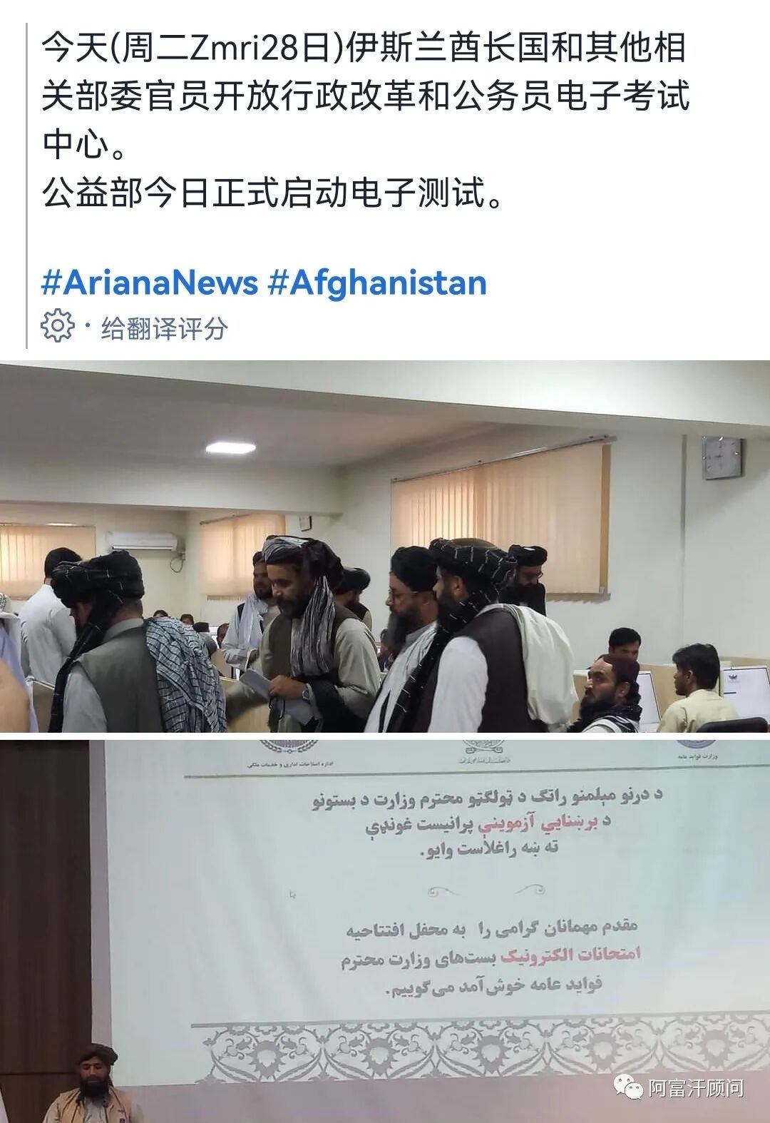今天,阿富汗塔利班当局启动行政改革和公务员电子考试中心。据阿富汗顾问所知,财政部改革已经完成一定进程,原来的税务局根据纳税规模划分,设大规模纳税人司、中等规模纳税人司和小规模纳税人司,现在已经三司合并为一,下面按各业务线税种设管理处,例如矿税处。