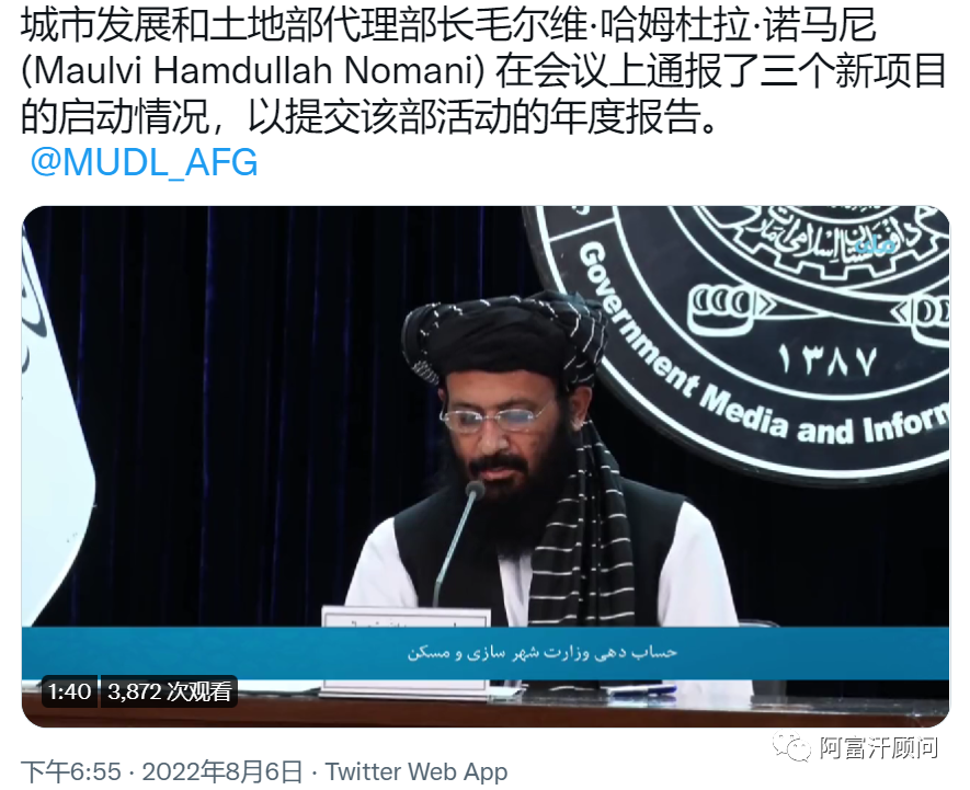8月6日,阿富汗当局代理城市发展和土地部长做年度工作报告。