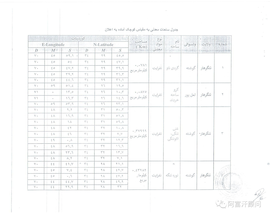 阿富汗十八个小型矿招标