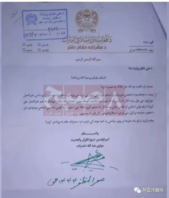 较早前,曾经有某小弟很神秘向阿富汗顾问展示了一份文件,声称是领袖对其亲自签名的类似于保障在阿富汗通行自由的路条文件,但由于没有可比性,无法确定签名真假,只能是不置可否。若此次社交媒体爆料的是真,现在則可判断,这个路条是真的!不过值得提醒的是,阿富汗是一个有深厚民主传统的地方,并不迷信任何权威,好比大支尔格是类似于最高议事机构,却往往亦是议而不决。因此,就是有最高领袖的签名文件,有多少人会买账也不好说。