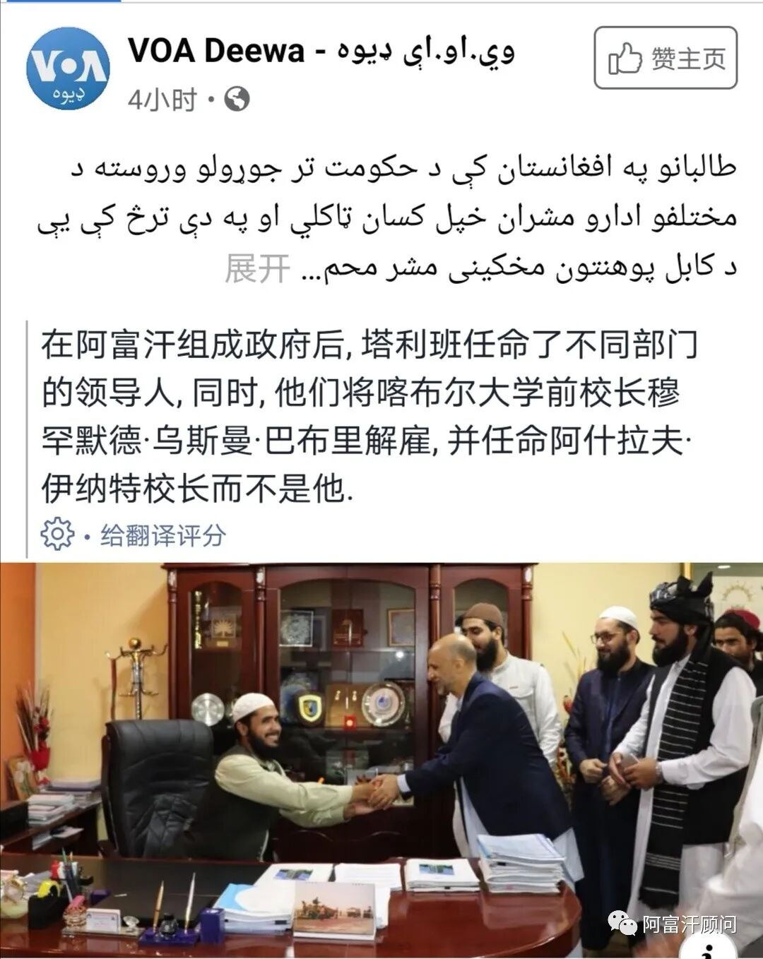 最近,阿富汗塔利班解雇了阿富汗最高学府喀布尔大学的前校长乌斯曼.巴布里,任命Muhammad Ashraf Zirat出任新校长,受到非议。非议的论调,新校长非知识精英和有担任校长经验,似乎大学校长一定要是高级知识分子和精英才能胜任。