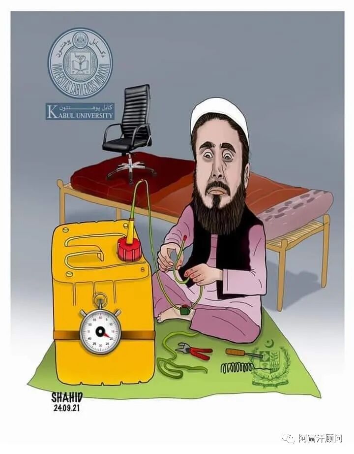 有社交媒体甚至贴出漫画戏谑新校长,擅长制造路边炸弹的设计师竟然担任大学校长。而据喀布尔大学官方网页上介绍,新校长Ashraf Zirat实际上是1387年(波斯历)毕业于喀布尔大学新闻学院。