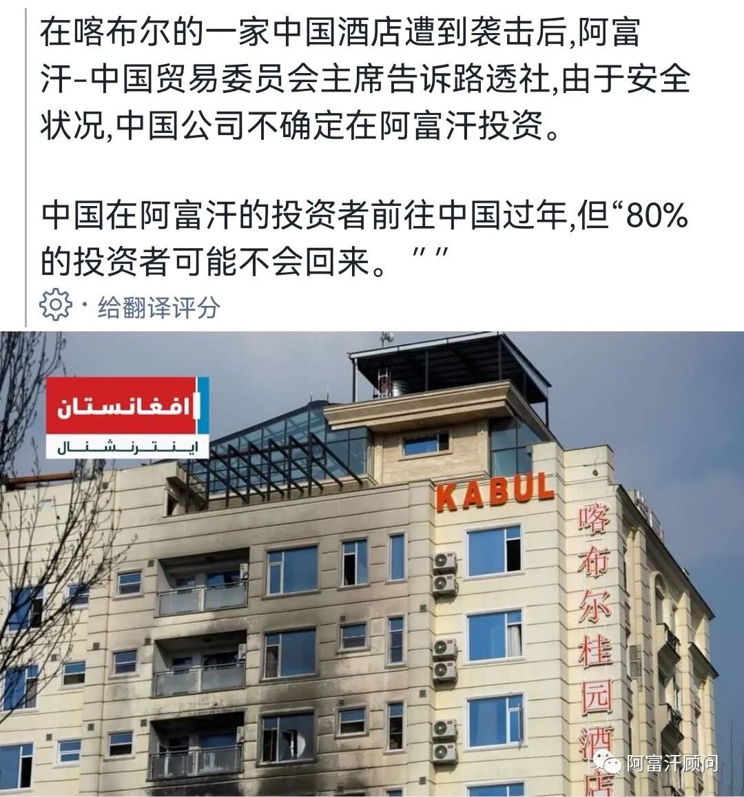 与此同时,阿富汗国际商会表示,伊朗商人在阿富汗投资举动向该地区和世界各地的其他投资者表明,在阿富汗投资的各种投资机会都是可行的。