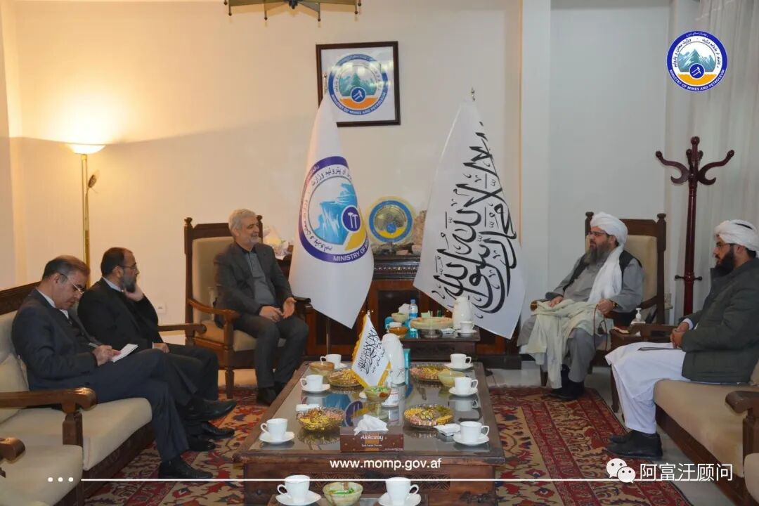 2月14日,阿富汗矿业和石油部代理部长 Sheikh Al-Hadeeth Shahabuddin Dalwarnan 先生在他的办公室会见了伊朗大使 Hassan Kazmi Qomi 博士及其代表团。
