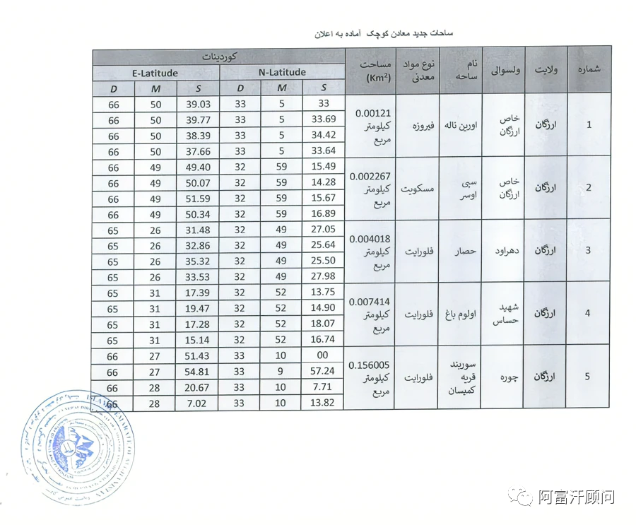 新年(阿历1402年)伊始,矿业和石油部宣布了乌鲁兹甘省的5个小型采矿项目(萤石、绿松石和白云母)招标,有兴趣的公司可在一个月内购买招标文件。