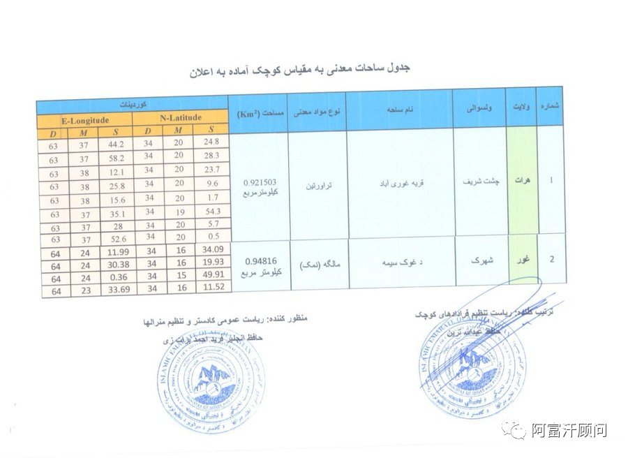 8月10日,阿富汗矿业和石油部宣布赫拉特省和古尔省两个小型矿区招标。