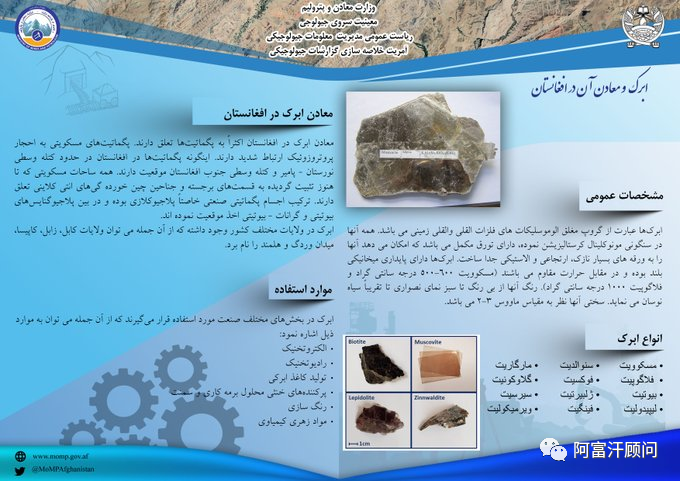 阿富汗矿业和石油部还公布了阿富汗的云母矿产资源情况(双语版)。下步是否会招标云母矿尚未可知。