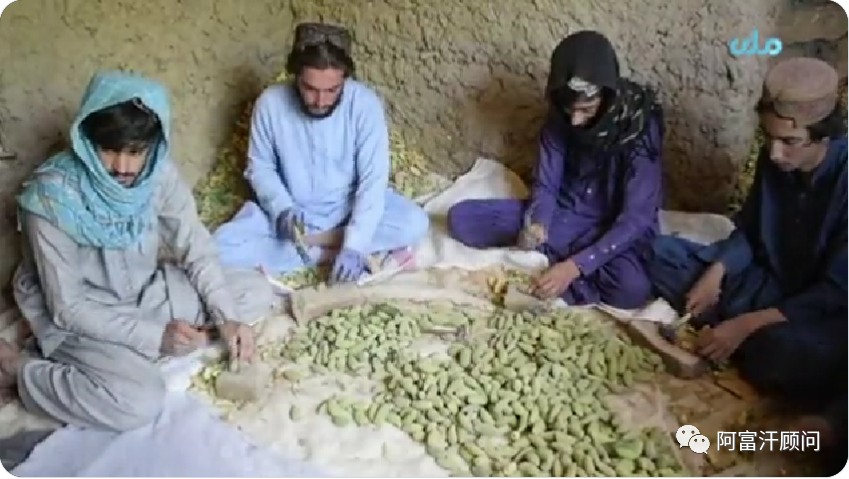 日前,阿富汗洛加尔省农业部门官员表示,该省杏仁产量比往年增加了10%。(当局公布的视频截图)