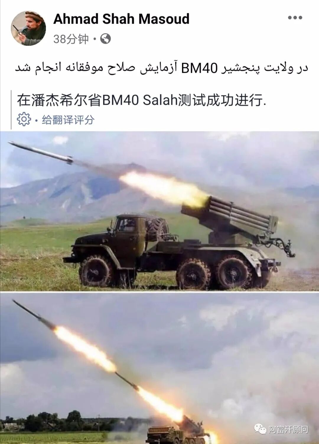 今年7月16日,艾哈迈德·马苏德公开展示其新购的武器测试图片