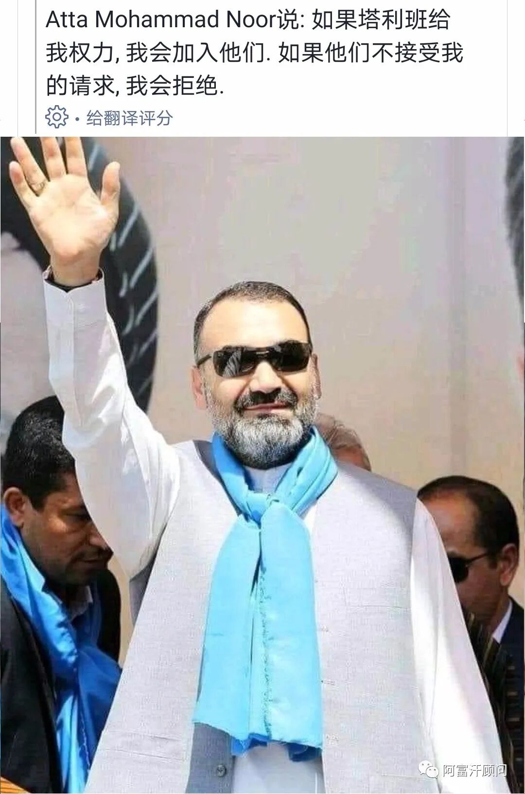 第三个出镜的是已经外逃境外的阿富汗伊斯兰促进会主席。据网络消息称他已经表态同意加入新政府。