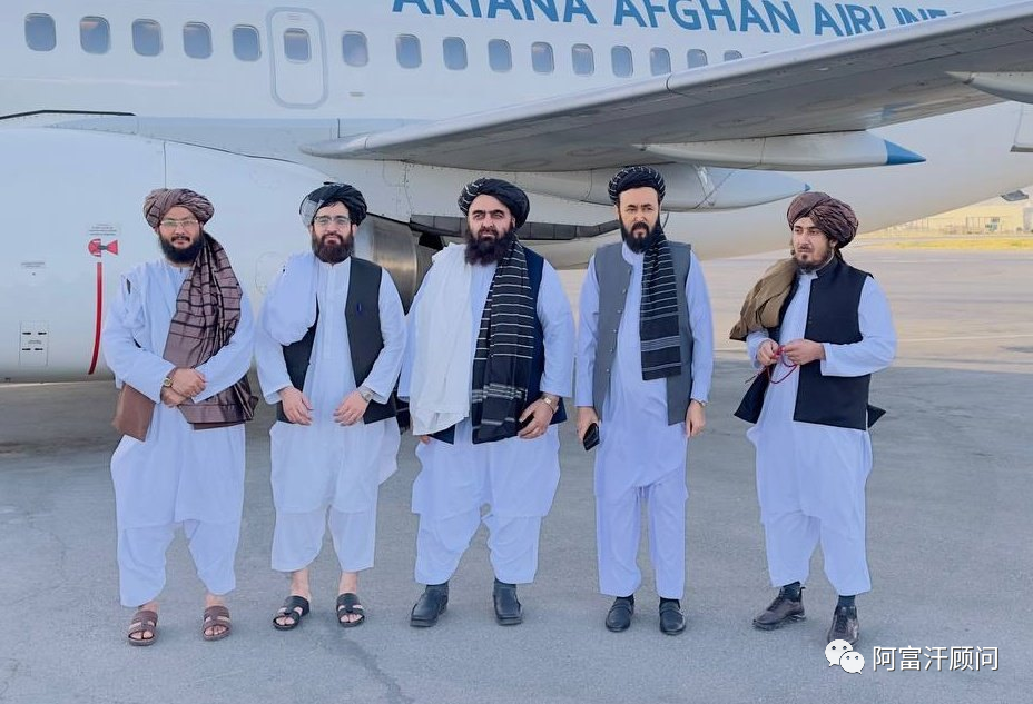 (周一,赴俄罗斯访问的阿富汗当局代表团成员在喀布尔机场合影)