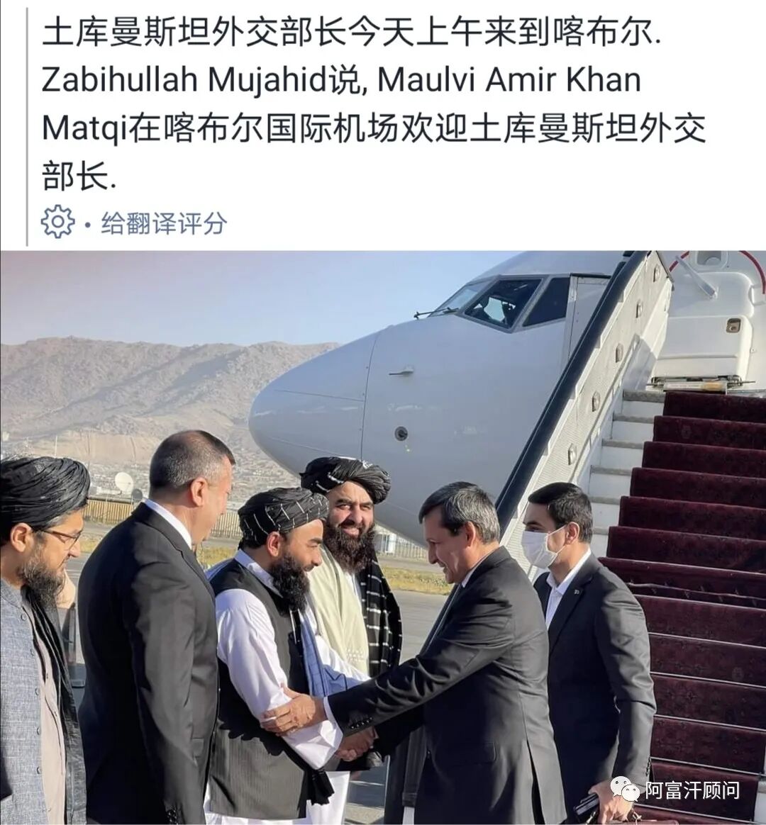 10月30日,土库曼斯坦外交部长访问阿富汗,阿富汗外交部长穆塔基到喀布尔机场迎接。随后,阿富汗伊斯兰酋长国代总理哈桑主持接待会议。