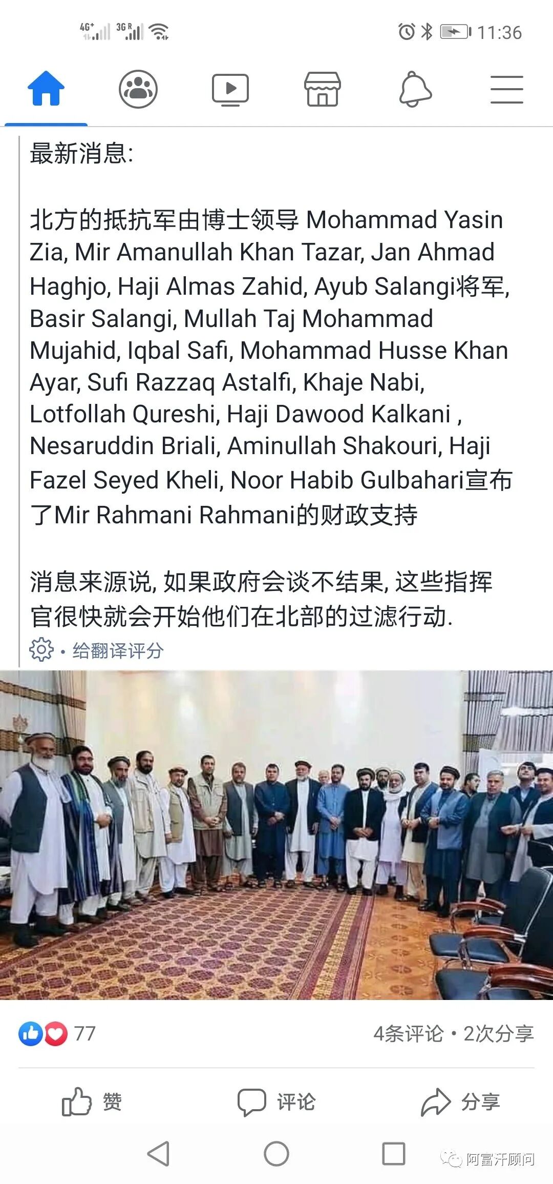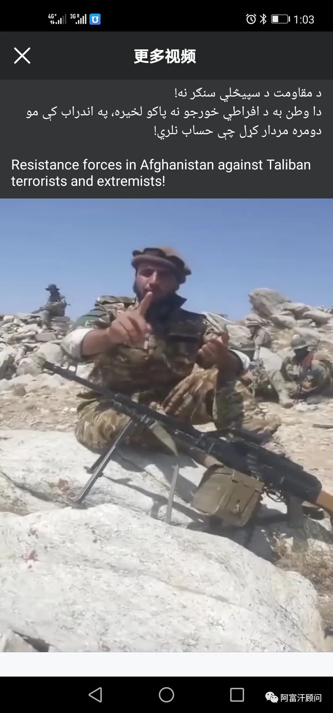 3. 阿富汗塔利班说,"在与抵抗运动领导人的谈判破裂后,星期日,数百名战斗人员正前往潘杰希尔山谷,试图控制该省。"而据抵抗阵线今天公布的消息,在潘杰希尔和巴格兰的安达拉布,抵抗阵线激战来犯之敌,击毙击伤塔利班100多,还俘虏了50人。