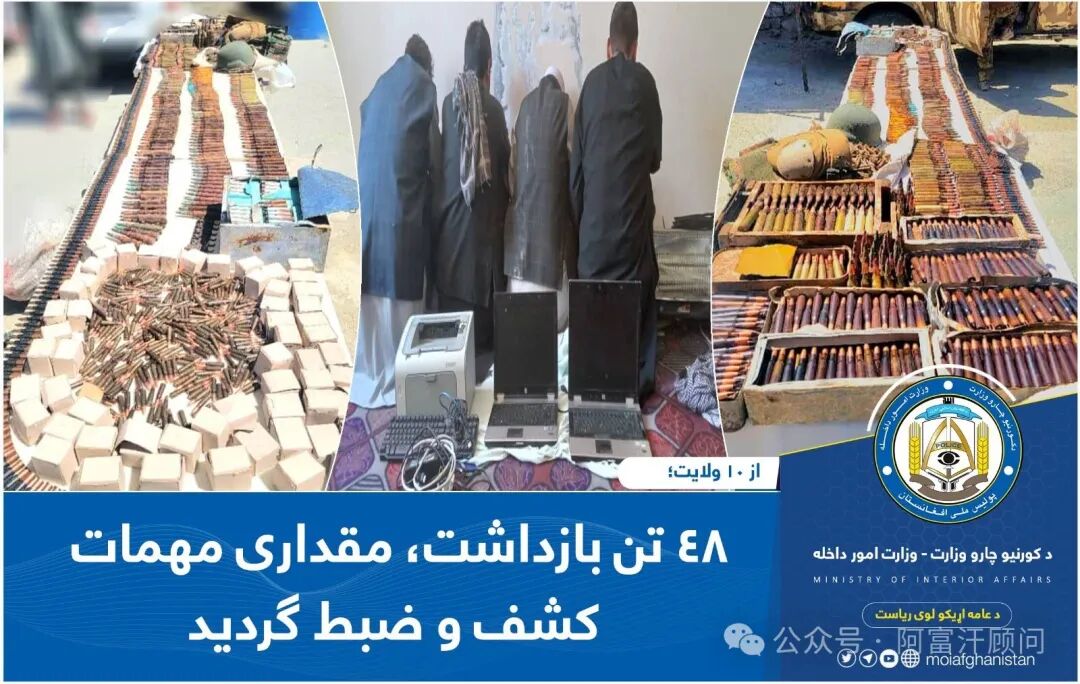 6月1日,阿富汗当局内政部公告,安全部队在该国10个省逮捕了48名涉嫌盗窃、赌博、敲诈勒索、道德败坏持有非法武器和其他刑事犯罪的人。另外,反恐警察在卡皮萨省发现并收缴了数千枚轻型和重型武器的子弹。