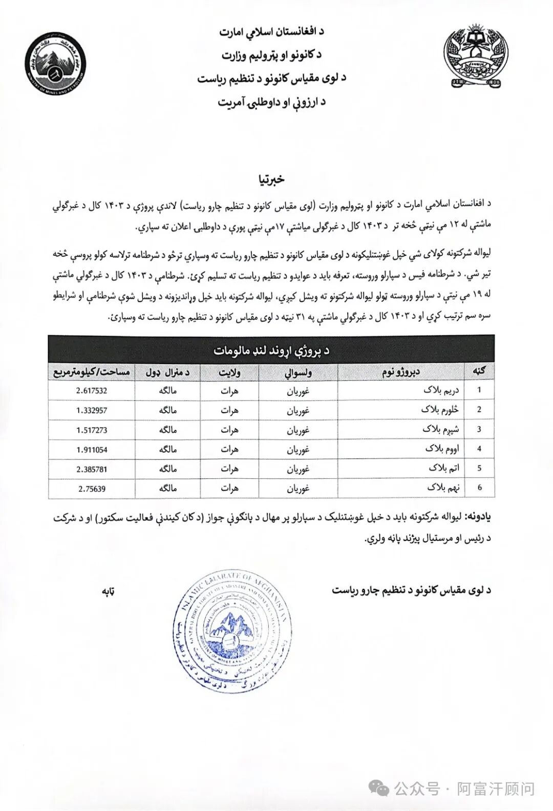 6月1日,阿富汗矿业和石油部宣布对6个盐矿公开招标。
