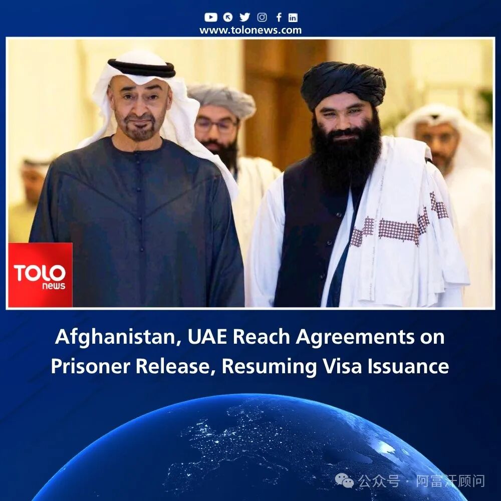 伊斯兰酋长国发言人扎比胡拉.穆贾希德在一份声明中表示,阿联酋官员和代理内政部长哈利法.西拉杰丁.哈卡尼就释放阿富汗囚犯、恢复签证发放和交通系统数字化等问题达成了协议。