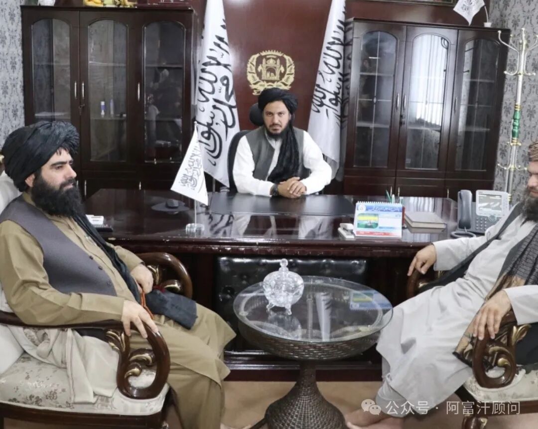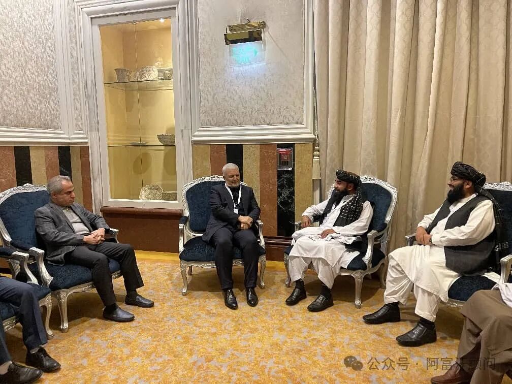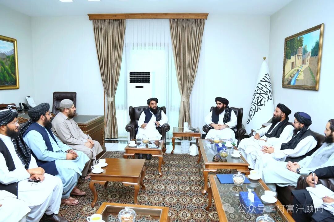 新闻发布会前,发言人向阿富汗外交部长汇报了参会成果。