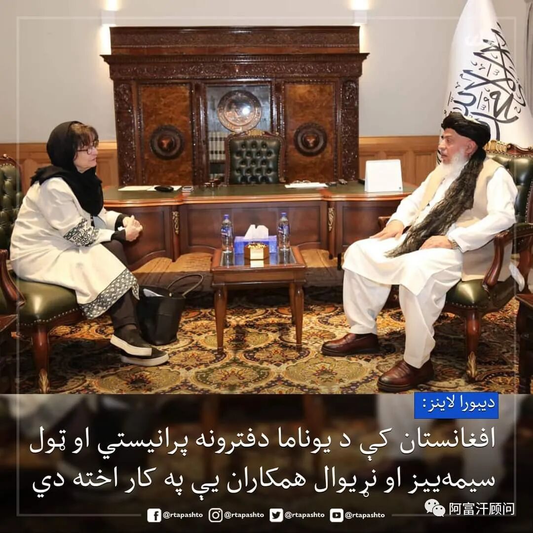 联合国阿富汗援助团在阿富汗的办事处开始运作。在与外交部副部长谢尔·穆罕默德·阿巴斯·斯坦尼克扎伊的会晤中,联合国阿富汗问题特别代表德博纳·莱恩斯(Deborna Lines)表达了她对安全形势感到高兴,并表示他们所有在阿富汗的办事处都将开放。Lines补充说,我们的区域和国际合作伙伴正在开展工作,并试图扩大他们的工作 。